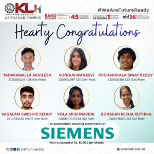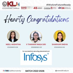 K L H Deemed to be University has meticulously planned to make all the eligible and interested students employed. The University had installed the infrastructure, employed well experienced faculty, designed and delivered programs that help enhancing the communication and soft skills which are required for making the students employable. An excellent system is in place that considers all the issues that make a student employable. The University has been successful for the last 12 years, in employing all the students who have registered and eligible for placement through its offices located across the country. About 50 trained personnel work extensively to make the students ready for recruitment by the Industry.